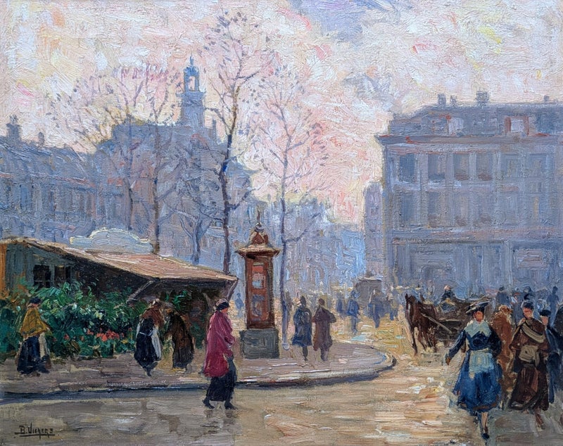 Stadsgezicht. Olieverf op doek 41 bij 51 cm, gesigneerd linksonder